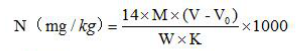 V-樣品滴定標(biāo)準(zhǔn)酸消耗量(mL),精確到小數(shù)點(diǎn)后四位